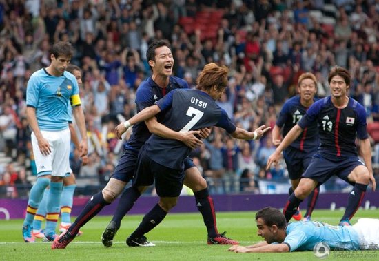 ????北京時(shí)間7月26日晚21時(shí)45分(倫敦當(dāng)?shù)貢r(shí)間7月26日下午14時(shí)45分),2012倫敦奧運(yùn)會(huì)男足D組的一場(chǎng)焦點(diǎn)戰(zhàn)在英國格拉斯哥的漢普頓公園球場(chǎng)展開爭(zhēng)奪,結(jié)果日本國奧隊(duì)1-0爆冷戰(zhàn)勝西班牙國奧隊(duì)。比賽第34分鐘,效力于德甲門興格拉德巴赫的中場(chǎng)大津祐樹攻入全場(chǎng)唯一入球,此外日本還錯(cuò)失了4個(gè)單刀。