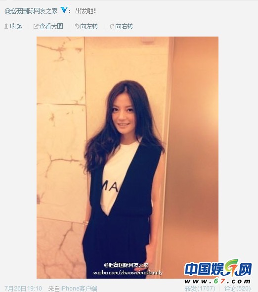 趙薇微博曬自拍