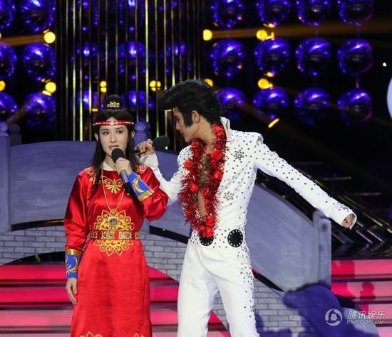 而賈玲的反串,也是當(dāng)晚最大的搞笑點(diǎn)。賈玲不僅“變聲”阿寶,在造型上也下足功夫,謝娜形容賈玲“只穿了一件坎夾就上來了”,帶著標(biāo)志性的頭巾,粘著胡子的賈玲,演出十分賣力,高音也演繹得很漂亮,令王祖藍(lán)都心動(dòng),欲做賈玲的男朋友,引得現(xiàn)場笑翻天。