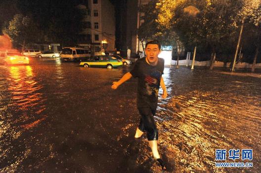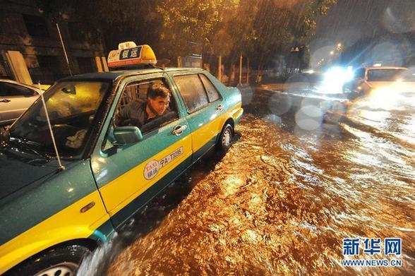 ????記者在銀川市主要街道采訪時看到,部分地段積水已過膝蓋,一些車輛因熄火滯留在水中。很多居民也在網上發(fā)微博稱小區(qū)和地下停車場被淹,在微博上求助。
