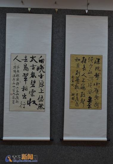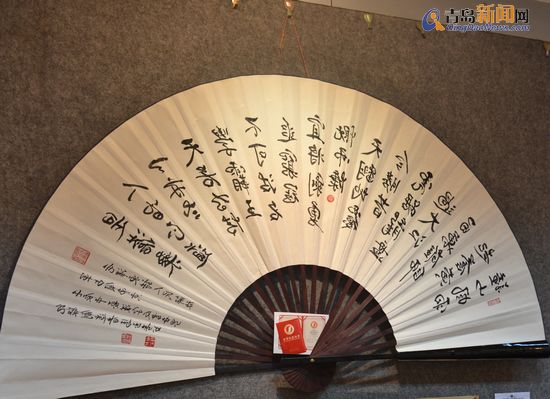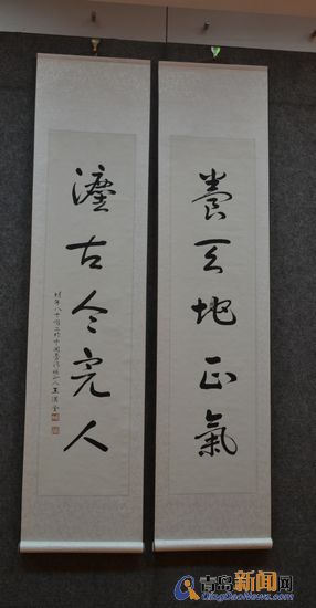 兩岸書畫展在青揭幕 書壇力士36斤重筆秀書法