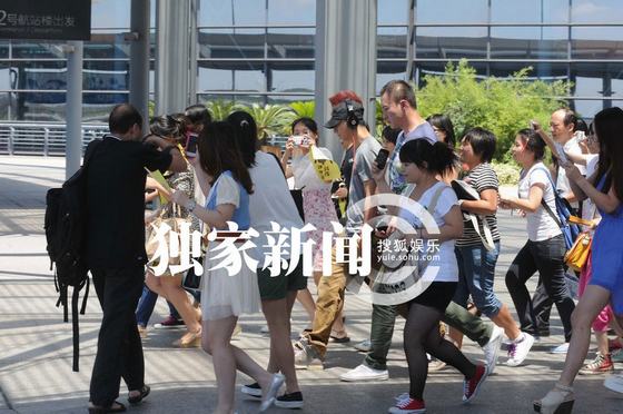 韓庚戴耳機不理粉絲接機 保鏢護駕與記者起沖突(組圖)