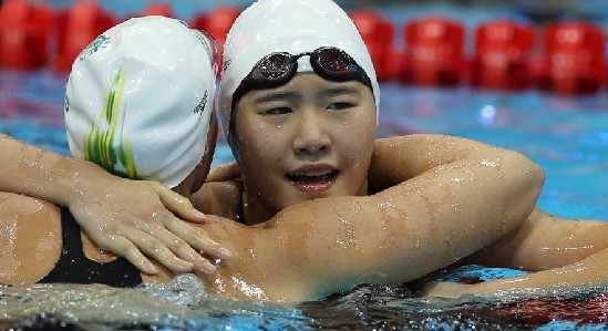 后100米的爭(zhēng)奪中,場(chǎng)上局勢(shì)發(fā)生變化,150米轉(zhuǎn)身處,美國(guó)人萊維倫茨以1分37秒94的成績(jī)排名第一,葉詩(shī)文以1分38秒25的成績(jī)位列第三。最后50米的爭(zhēng)奪,葉詩(shī)文自由泳全力加速,趕超其他對(duì)手,最終以2分07秒57的成績(jī)奪取冠軍,再次打破奧運(yùn)會(huì)紀(jì)錄。澳大利亞選手庫(kù)迪斯以2分08秒15的成績(jī)位列第二,美國(guó)人萊維倫茨以2分08秒95的成績(jī)獲得銅牌。