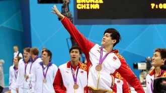 ????北京時(shí)間8月1日消息,2012年倫敦奧運(yùn)會(huì)游泳比賽進(jìn)入第四天,中國隊(duì)收獲一枚極具價(jià)值的獎(jiǎng)牌。在男子4×200米自由泳接力決賽中,郝運(yùn)、李昀琦、蔣海琦和孫楊組成的中國隊(duì)依靠孫楊最后一棒發(fā)力提升了兩個(gè)位置,中國隊(duì)以7分06秒30的成績拿到銅牌。美國隊(duì)以6分59秒70獲得金牌,菲爾普斯終于在倫敦拿到金牌,他也以19枚獎(jiǎng)牌的成績創(chuàng)造了奧運(yùn)會(huì)紀(jì)錄,法國隊(duì)獲得銀牌。
