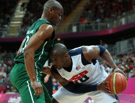 ????美國隊實力強大,他們開局打出13-0的比分,科比得到7分,杜蘭特得到6分。直到6分43秒,尼日利亞通過罰球才得到2分。詹姆斯飛身扣籃得分,迪奧古中投得分??票冉忧蜣D(zhuǎn)身投籃得分,5分32秒迪奧古拋投得分。杜蘭特遠投三分后迪奧古勾投得分,阿米奴反擊扣籃得分,科比又連得5分。美國隊換人又是五上五下,安東尼遠投三分,迪奧古連續(xù)得分,這場比賽成為了他的表演賽。韋斯布魯克和安東尼又連中3分,美國隊38-15領先。勒夫遠投三分,阿米奴和斯金恩分別得分,安東尼再中三分,美國領先27分。斯金恩遠投命中,安東尼中投成功,首節(jié)美國隊49-25領先。