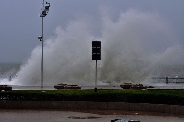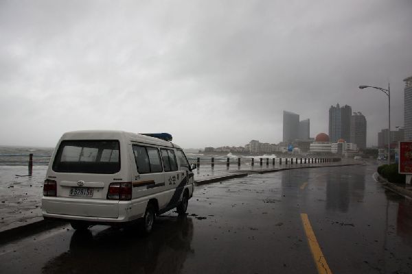 這是“中苑”號被刮到岸邊了,很多人在那看,警車也來了。(網(wǎng)友 花花櫻桃 攝)