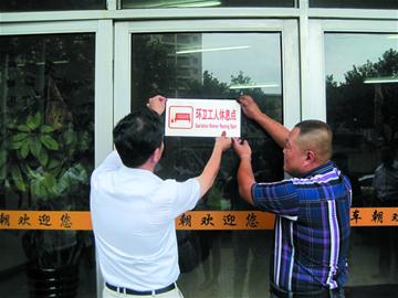 青島晚報和市政公用局聯(lián)辦的“咱給環(huán)衛(wèi)工,添些休息點(diǎn)”活動啟動以來,不少商鋪紛紛打來熱線電話咨詢報名,想加盟“歇腳點(diǎn)”。昨天上午,市政公用局在車朝汽車俱樂部懸掛了首個“環(huán)衛(wèi)工人休息點(diǎn)”的標(biāo)識牌,并將給已報名的230余家店鋪按照報名先后順序陸續(xù)懸掛標(biāo)志。從昨天起,環(huán)衛(wèi)工人看見這個標(biāo)識牌,就可以進(jìn)去歇腳。另外市政公用局歡迎沿街商鋪繼續(xù)報名參加,年底將對各個歇腳點(diǎn)進(jìn)行表彰。