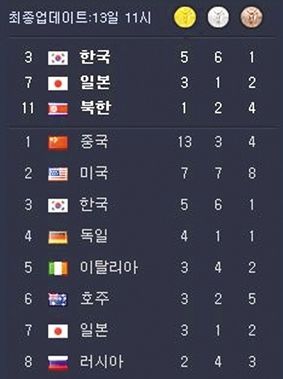 另類(lèi)獎(jiǎng)牌榜:韓國(guó)媒體奇思 乍看以為韓國(guó)第1(圖)
