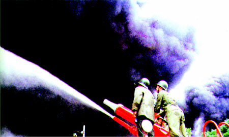 當(dāng)年黃島油庫發(fā)生火災(zāi)時(shí)正在全力救援的現(xiàn)場照片