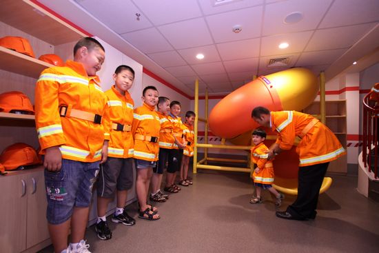 比如世界里的消防局,孩子們正在進(jìn)行消防演練