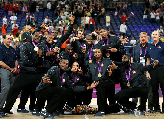2012年8月12日,男籃決賽,夢(mèng)十107-100再勝西班牙奪冠。美國男籃成功衛(wèi)冕,登領(lǐng)獎(jiǎng)臺(tái)享王者時(shí)刻。