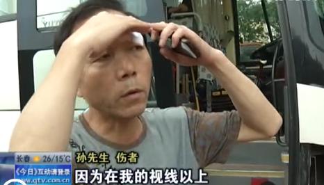 行人走路自己撞上靜止大巴 當場頭破血流(圖)
