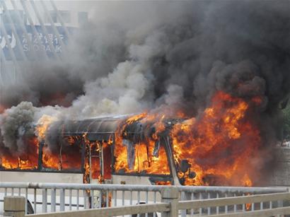 ????“在山東路與敦化路路口,有一輛中巴車自燃了,火勢很大?!弊蛱焐衔纾忻裎合壬鷵艽蛟鐖鬅峋€82888000報料。記者