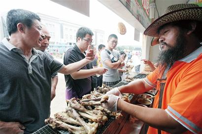 “第一年賣了1噸,第二年賣了兩噸,每年銷售量都在增長(zhǎng)……”裴德年的買賣越做越紅火,攤位面積擴(kuò)大到了20平方米,生意最紅火時(shí)一天賣出3000多條烤羊腿,有3噸重,門前的隊(duì)伍排出60多米遠(yuǎn)。14年來(lái),他成為啤酒節(jié)上最牛的烤肉大王,最高銷售紀(jì)錄還在不斷刷新中。