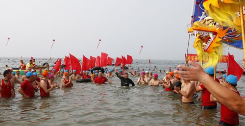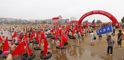 8點(diǎn)鐘,青島港董事局主席、總裁常德傳發(fā)表了講話并鳴槍發(fā)令,激情橫渡匯泉灣活動(dòng)正式開始。2000多名海港職工組成的6大橫渡方陣,首尾相接。在《美麗的青島港》的激揚(yáng)旋律中,職工們高舉“凝聚合力 擁抱蔚藍(lán)”、“勇當(dāng)率先科學(xué)發(fā)展實(shí)現(xiàn)藍(lán)色跨越的排頭兵”、“魅力大港 藍(lán)色跨越”、“溫馨西聯(lián)”、“激情橫渡匯泉灣 做大做強(qiáng)董家口”等大型紅色標(biāo)牌矗立海面上,格外突出,引人注目。(青島新聞網(wǎng)記者 孫璐璐)