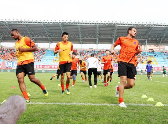 青島中能坐鎮(zhèn)主場靜候河南建業(yè)的挑戰(zhàn)。周六球隊踩場的時候,下午的天氣還真應景,有那么點兒“黑云壓城城欲摧”大戰(zhàn)之前緊張壓抑的氣氛。