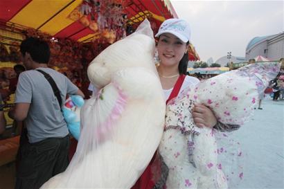 記者在采訪中了解到,不少游客前來玩小游戲都不差錢,掏個一兩百不在話下。在投籃球處,一對年輕伴侶先后玩了5次,共用掉了20個游戲幣,花了100元錢。現(xiàn)場的工作人員告訴記者,前天,一幫本地市民前來玩奇妙彩虹游戲,花了200元錢,最后中了一個大獎,抱走一個維尼熊毛絨玩具,還中了兩個小獎。