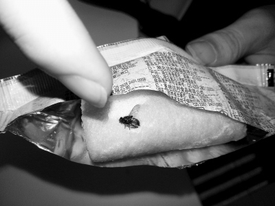 ????8月21日,市民陳女士反映:她從家附近的超市里買(mǎi)了一袋達(dá)利園瑞士卷蛋糕,其中一個(gè)蛋糕中竟有一只蒼蠅。