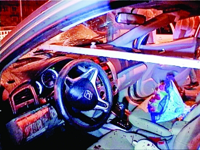 一根鋼筋直接插入車(chē)內(nèi)駕駛座。