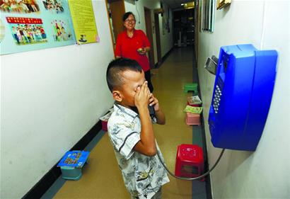 晚上7時30分左右,孩子們洗漱完準備上床了,宿舍走廊的電話響了,是郭翰文媽媽打來的。聽到老師喊自己的名字,郭翰文高興地從自己的宿舍跑出來,每天這個時間媽媽都會準時打來電話。