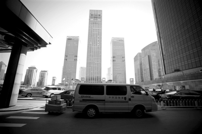 這是CBD角落隨處可見(jiàn)的情形??爝f員們像釘入CBD寫(xiě)字樓空隙的楔子。對(duì)于擁有89座寫(xiě)字樓的CBD來(lái)說(shuō),快遞是他們活動(dòng)的神經(jīng)元。
