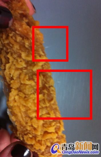 ????說(shuō)起自己吃到“精品雞毛翅”的經(jīng)過(guò),王女士表示十分意外。“那天,我陪朋友去李村辦事,中午餓了就打算先買(mǎi)點(diǎn)東西墊墊,一商議就進(jìn)了李村麥當(dāng)勞向陽(yáng)路店,當(dāng)時(shí)我還被朋友說(shuō)了一通,他說(shuō)我沒(méi)品位,亂吃垃圾食品,我心想偶爾吃一次沒(méi)關(guān)系,就買(mǎi)了兩對(duì)辣翅,一包薯?xiàng)l?!蓖跖空f(shuō)道。