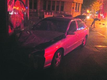 ,一輛伊蘭特轎車撞完了一輛越野車之后,沖上了人行道撞在百盛大廈墻上。 ”前晚11時(shí)25分左右,記者接到的哥李師傅電話稱,自己眼睜睜目睹了一場(chǎng)慘烈車禍。記者聞?dòng)嵙⒖腾s往現(xiàn)場(chǎng)看到,一輛三菱越野車朝北停在中山路上,越野車的左側(cè)車頭受損,左前輪胎也已經(jīng)爆了胎。在越野車后方大約20米的中山路和曲阜路路口地面上還有一大片汽車碎片,是發(fā)生碰撞時(shí)伊蘭特轎車遺留下的。