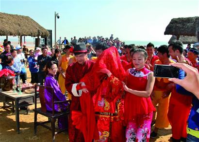 靈山灣上演漁家婚禮 數(shù)百人圍觀新郎新娘(圖)