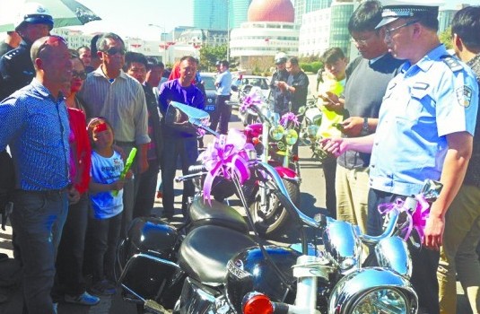 ????指揮中心立即調(diào)派附近執(zhí)勤的市南交警香港西路中隊(duì)民警往前盤查。當(dāng)這一車隊(duì)行駛至澳門路短暫停留時(shí),數(shù)輛警車一齊抵達(dá)澳門路,將6輛摩托車全部包圍。這6輛摩托車都是哈雷、寶馬等豪華摩托車,每輛的價(jià)值都在20萬(wàn)元以上,有的車型甚至近30萬(wàn)元。為了不影響婚車進(jìn)度,將違法摩托車查獲后,民警將婚車檢查后放行。