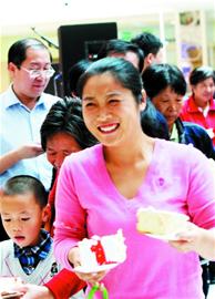 開幕式現(xiàn)場,2000多名市民共同分享了一塊長18米、重800斤的巨型蛋糕。立華園蛋糕店的糕點(diǎn)師告訴記者,為了保證蛋糕的新鮮口味,六個糕點(diǎn)師通宵加班,歷時8個小時才制作完成。市民李女士將一塊蛋糕送入5歲的兒子口中后興奮地告訴記者,自己是青島晚報的老讀者了,前幾天從報紙上看到讀者節(jié)活動,今天一大早就從城陽帶著孩子來到現(xiàn)場,除了分享甜蜜蛋糕外,她還給孩子報名參加了讀者節(jié)舉辦的兩項少兒活動。