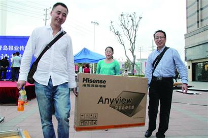 昨天下午2時30分,在市民注視下,主持人邀請現(xiàn)場的小朋友抽取了8名訂報的幸運(yùn)讀者,家住百通花園的薛紅麗女士,幸運(yùn)地獲得了價值5000元的一等獎,另有3名讀者獲得了二等獎、4名讀者獲得了三等獎。記者注意到,這8名中獎的讀者訂閱的都是青島早報。下午3時30分左右,頒獎活動正式開始,青島報業(yè)傳媒集團(tuán)副總經(jīng)理陶進(jìn),為中獎的訂報市民現(xiàn)場頒發(fā)了獎品?!皬膩頉]中過大獎,沒想到訂青島早報這一次真的中獎了?!苯舆^液晶電視的薛紅麗女士告訴記者,多年來她已經(jīng)養(yǎng)成了閱讀報紙的習(xí)慣,“以后我們還會繼續(xù)訂閱青島早報?!毖t麗說。