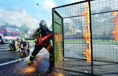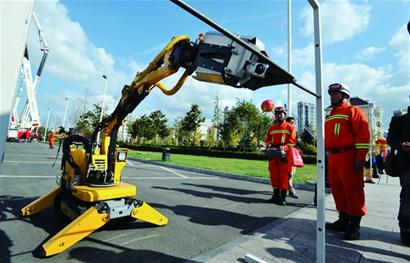 活動中,市公安消防支隊購置的Brokk50型消防破拆機器人首次亮相。消防破拆機器人重500公斤,身高1米多,可在濃煙、高溫、倒塌等危險場所工作,它可以選擇不同的工具完成剪切、擴張、鑿巖等多種作業(yè),剪切力可達16噸,擴張力達6噸,300米以內(nèi)的全部動作均可實現(xiàn)無線遙控操縱,它投入執(zhí)勤將提高青島市公安消防部隊撲滅特大惡性火災能力,對減少財產(chǎn)損失和滅火救援人員的傷亡將起到重要的作用。(記者 于順 趙健鵬 通訊員 丁敏 李豹松 攝影報道)