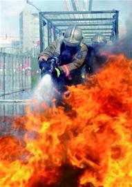 昨天上午10時30分,演練正式開始。險情假定青島大劇院一棟高層建筑因電線短路引發(fā)火災,火勢向其它樓層蔓延,樓內(nèi)大量人員被煙火圍困。發(fā)現(xiàn)火情后,會展中心有序組織被困人員利用疏散樓梯疏散,同時利用