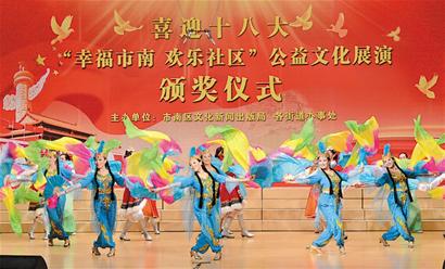 ????為期4個月的“幸福市南·歡樂社區(qū)”公益文化展演日前落幕。本次活動由市南區(qū)文化新聞出版局聯(lián)合各街道辦事處共同主辦,4大板塊30余項活動在社區(qū)、廣場、庭院輪番上演,為社區(qū)居民提供了豐盛的“文化大餐”。(王群 攝)