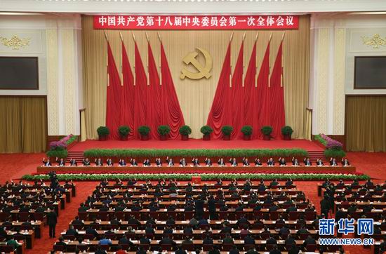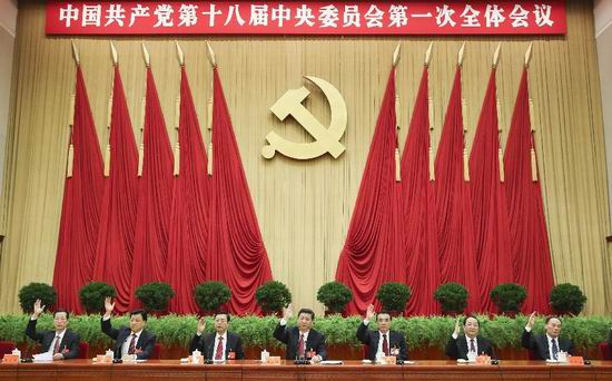 11月15日,中國共產(chǎn)黨第十八屆中央委員會第一次全體會議在北京人民大會堂舉行(