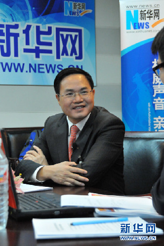 2012年11月13日,十八大代表、廣東省梅州市委書記朱澤君作客新華網(wǎng)設在京西賓館的十八大訪談間,接受新華網(wǎng)專訪。新華網(wǎng) 李非 攝