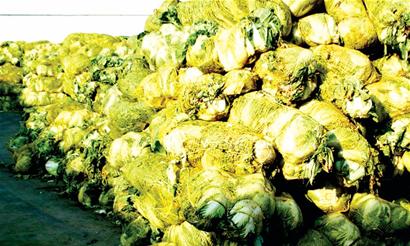 “用來制作泡菜的白菜菜幫比較薄,個頭比普通白菜稍小,畝產(chǎn)大概在七八千斤?!蹦z州大白菜研究所所長荊世新解釋說,這種白菜目前在平度、膠州、萊西都有種植。據(jù)市農(nóng)委農(nóng)技站統(tǒng)計顯示,今年青島大白菜種植總面積為26萬畝,其中至少有四分之一以上產(chǎn)量被用來生產(chǎn)泡菜出口日韓。