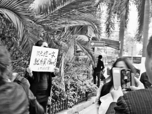 從照片上可以看到,該女子一身黑衣打扮,頭上還戴著一副黑色墨鏡,雙手舉著一塊牌子,寫著:“10元抱一次,就為買iPpon5?!迸谱酉路竭€有一行小字:“不設找零?!?/p>
