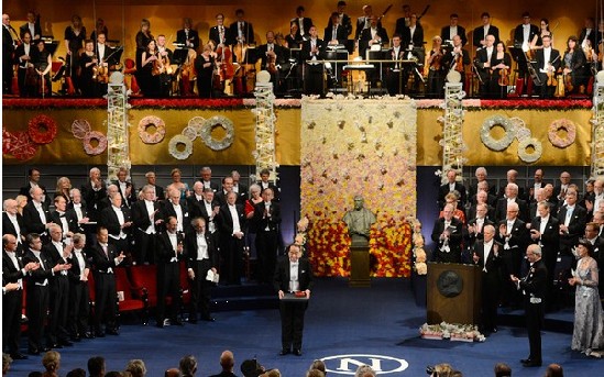 12月10日,2012諾貝爾獎(jiǎng)授獎(jiǎng)儀式在斯德哥爾摩音樂(lè)廳舉行,不同于一般的頒獎(jiǎng)典禮,這是一場(chǎng)皇室盛宴。
