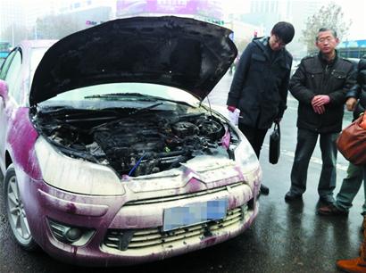 記者看到,起火的是一輛暗紅色的雪鐵龍轎車,駕駛員是一名年輕女子,起火的地方位于車體前部,車內(nèi)的引擎保護(hù)罩等塑料零部件都被燒成了“焦炭”,粘附在發(fā)動(dòng)機(jī)等鋼鐵材質(zhì)的機(jī)件上,前風(fēng)擋玻璃的下邊緣被烈火燒爆,所幸駕駛室并未被殃及。