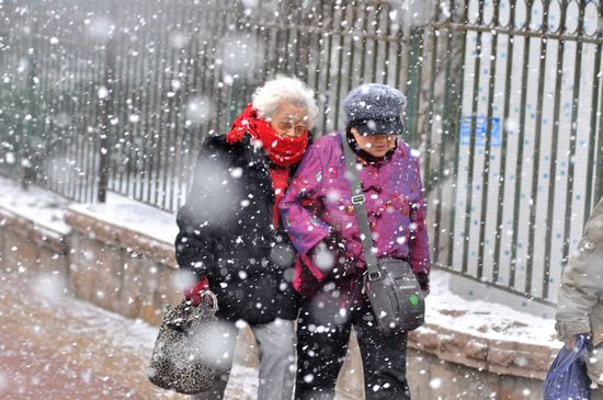 首發(fā):青島市區(qū)雪花飄飛 真正意義上的今冬首雪(組圖)