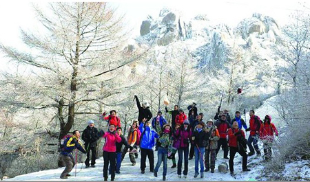 ????2011年的元旦,山東青島天降小雪。游客們身穿登山服、腳踏登山鞋、打著背包、帶著午餐沿著嶗山山路向著大山深處進發(fā),登山賞雪,回歸自然。