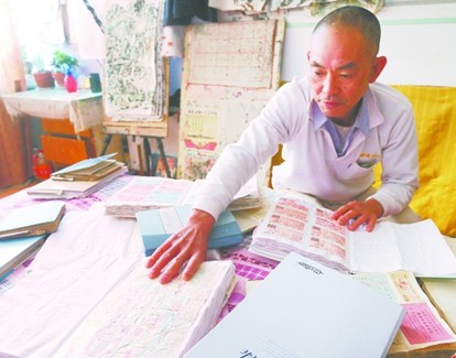 安郁森收藏的3000多張火車票,貼滿了10多本筆記本。