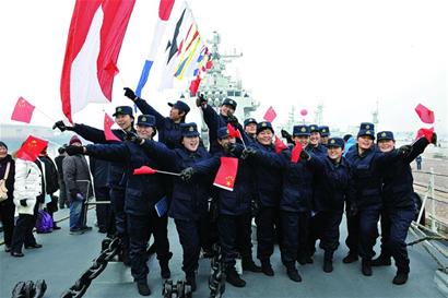 “青島艦熱烈歡迎新戰(zhàn)士”、“從軍報(bào)國、矢志海疆”……青島艦懸掛著鮮艷的橫幅,歡迎她們從馬背來到甲板,從邊關(guān)來到海邊,從地方來到軍營?!败娕炘趺窗l(fā)射導(dǎo)彈?”“艦員怎么生活?”“特戰(zhàn)隊(duì)員怎么選拔?”新戰(zhàn)士們一路參觀,一路詢問,艦員一一耐心作答。在軍艦威猛的艦炮下,新兵添譯告訴記者,以前,只是通過電視、網(wǎng)絡(luò)了解到祖國海軍的強(qiáng)大,今天真是大開眼界。“我一定要努力訓(xùn)練,爭取早日成為一名合格的女艦員!”添譯說。
