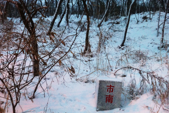 市南界碑安臥雪中(青島新聞網(wǎng)記者周琦 攝)