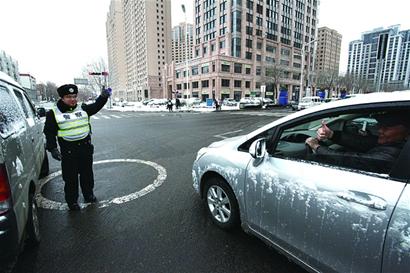 薛海濤臉被風(fēng)吹得紅紅的,不時地還抹著鼻子?!斑@兩天感冒了,今天按正常情況應(yīng)該休息的,可是下大雪又被調(diào)來上崗了。”薛海濤說,好多同事和他一樣,都是為了島城道路的交通安全暢通。