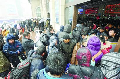 ????從昨天早晨開始,青島火車站無論是人工售票大廳還是自動售票廳,都擠滿了人,買票的長隊已經(jīng)排到了廣場上,公安民警和火車站工作人員不斷地在現(xiàn)場維持秩序。工作人員告訴記者,這場大雪的來臨,只有火車受到的影響相對較小,加上臨近元旦,很多在青島工作和上學的外地人準備回家,也加劇了火車站內的擁擠程度。