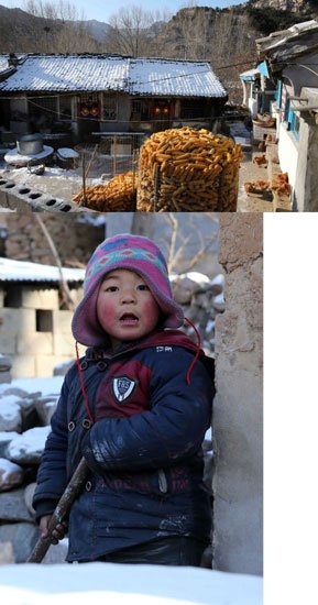 圖為駱駝灣村村景和村里兒童 。記者李斌、龐興雷