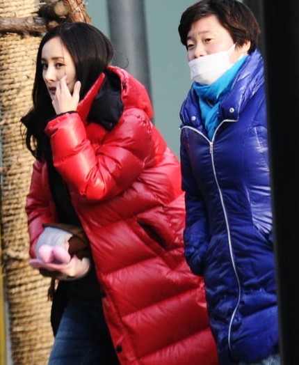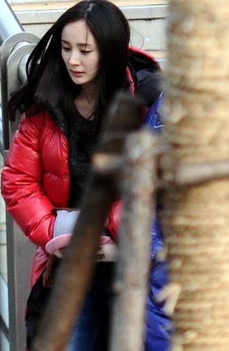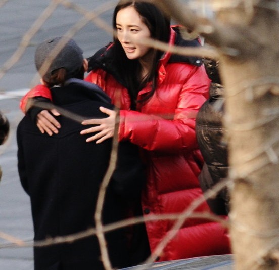 楊冪穿大號(hào)紅羽絨服熊抱郭敬明 郭敬明小鳥依人(圖)
