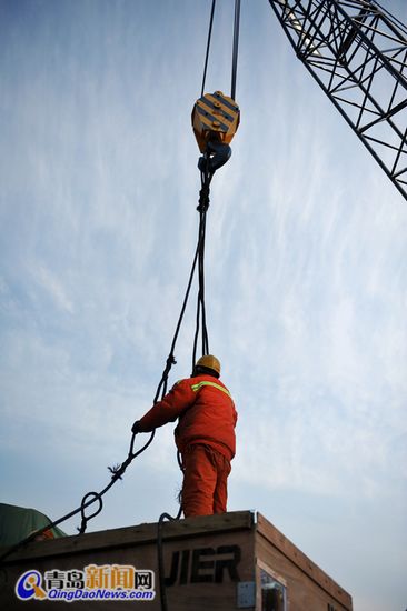 ????碼頭上的海風(fēng)冷得刺骨,但是賣(mài)力工作的賈自剛和其他工人一起把厚厚的鴨絨服也脫掉了?!案善鸹顏?lái)不方便也穿不??!”他的額頭上還滲出了細(xì)密的汗珠。????